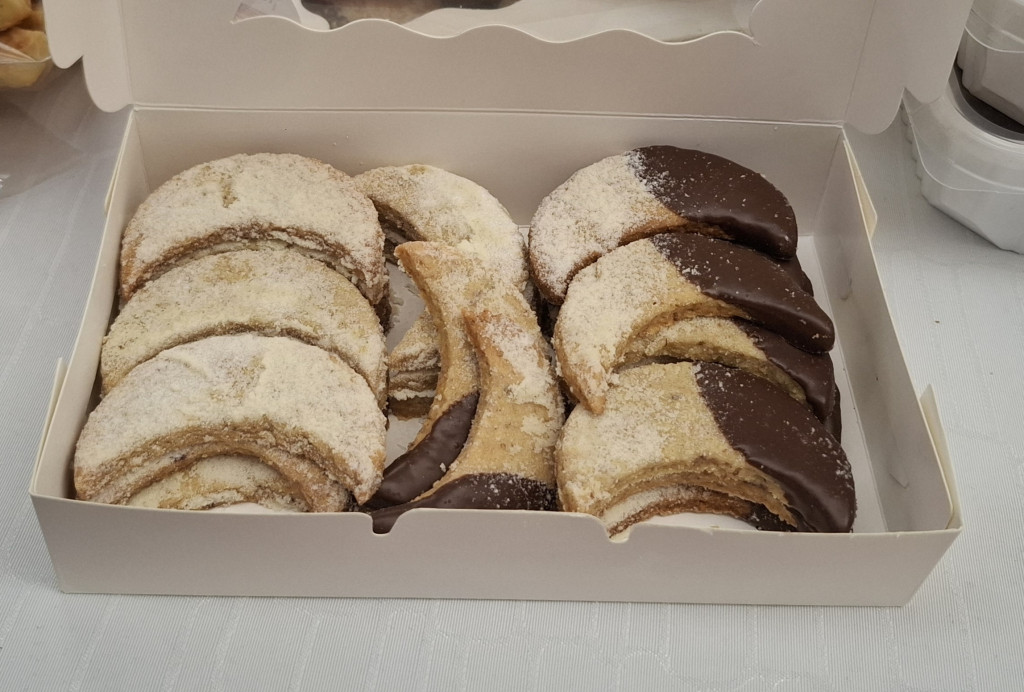 Szilvalekváros hókifli Forró teával a legfinomabb sütemény. Tésztája a kacsazsírtól és vajtól omlós. A szilváinkból készült szilvalevár kültéri sütőben sült keménnyé.. Tésztája és a lekvár is minimális mennyiségű cukrot tartalmaz. Összetevők: liszt, kacsazsír, vaj, tejföl, cukor, élesztő, só