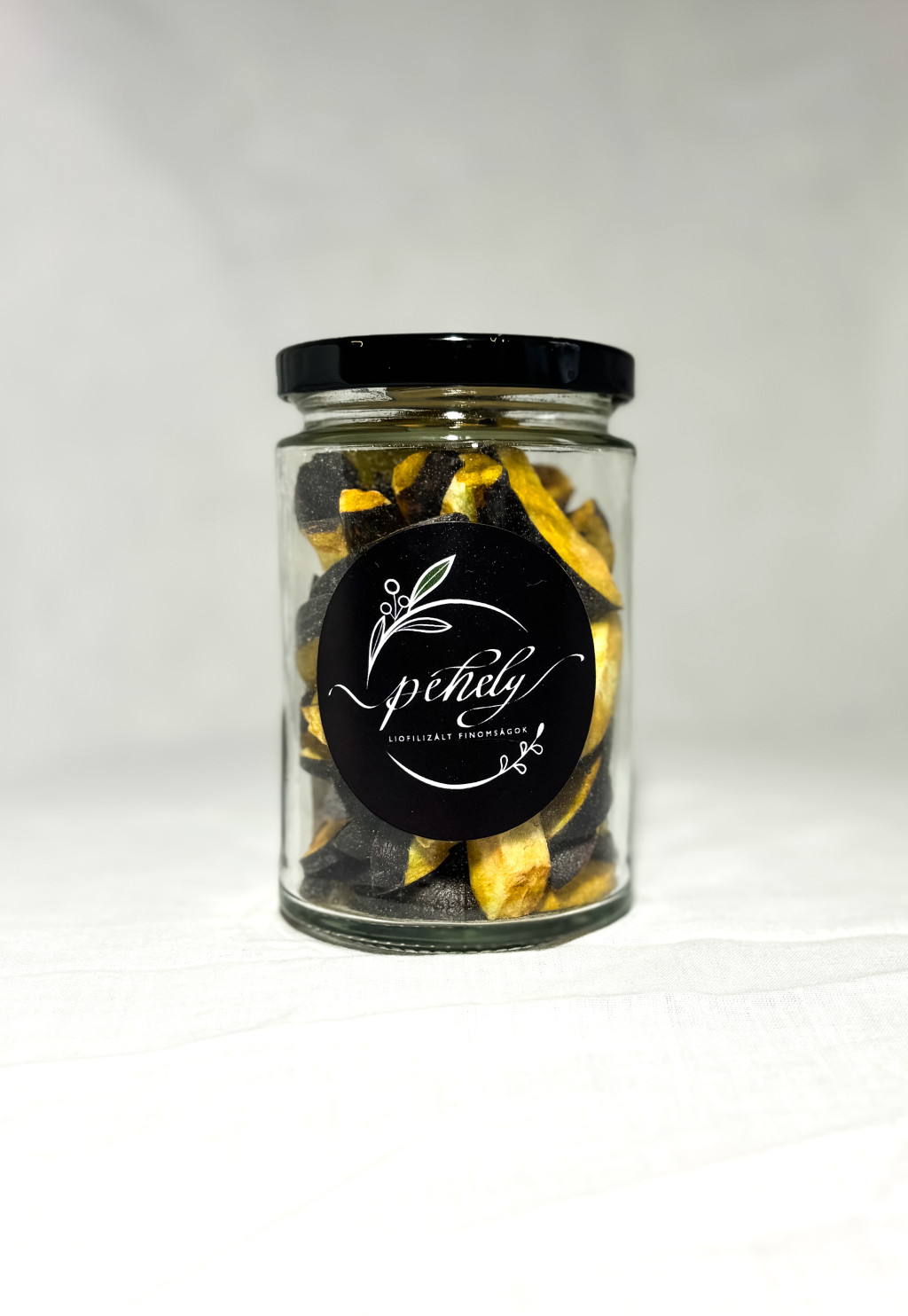 Összetevők: 100% fagyasztva szárított gyümölcsök változó arányban. Zellert feldolgozó üzemben készült. Tárolja hűvös, száraz és sötét helyen! Felbontás után gondosan zárja vissza a csomagolást! Gyártó: Magyar Zamat Kft. (2518 Leányvár, külterület 08/12 hrsz.) Minőségét megőrzi a gyártástól számított 6 hónapon belül.