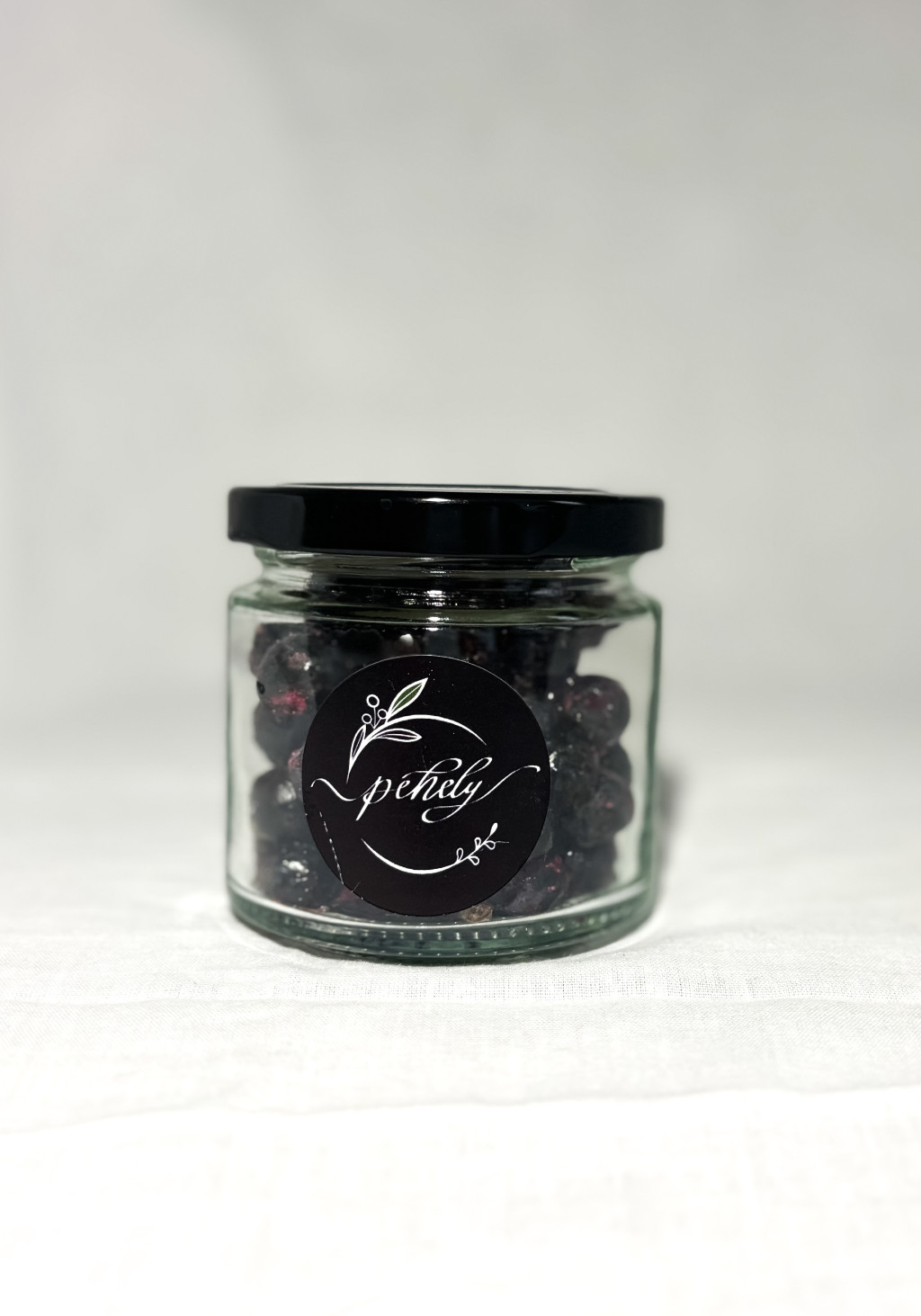 Aszalt meggy újfehértói fürtös meggyből. Kemencés aszalóházban készült. Tartósítószert és egyéb hozzáadott anyagot nem tartalmaz.