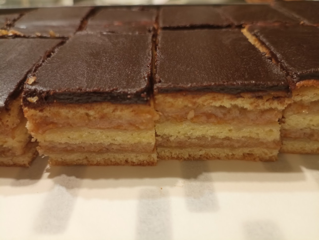 A sárgabarack lekvár és a dió különleges találkozása élesztős omlós tésztában. Tartalmaz: Liszt, lekvár, dió, cukor, margarin, vaj, tejföl, tojás, élesztő, szódabikarbóna, csokoládé