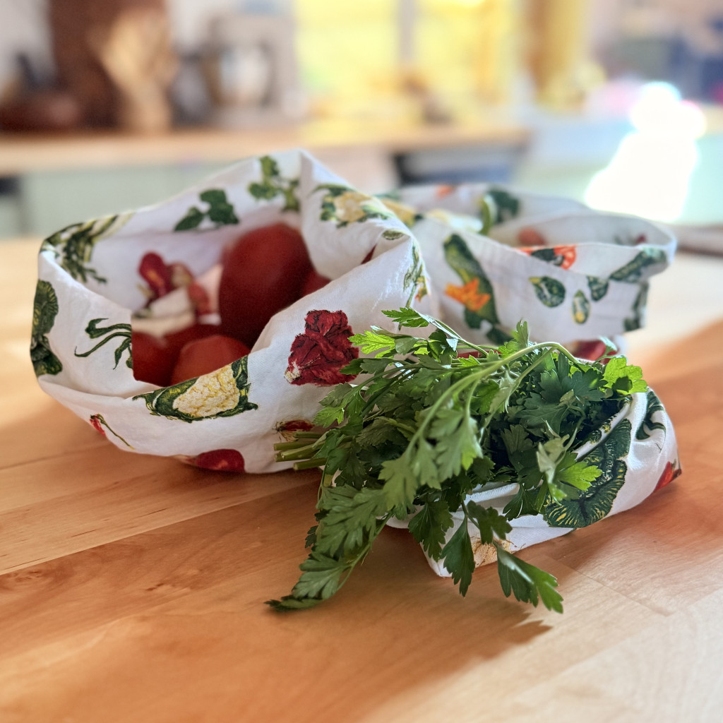 A csomag 3 db nagyobb méretű textil zsákot tartalmaz. Méretek: - 1 db 37x31 cm - 1 db 31x31 cm - 1 db 34,5x25,5 cm Pamutvászomból készült zsákok moshatóak 30-60 fokon.