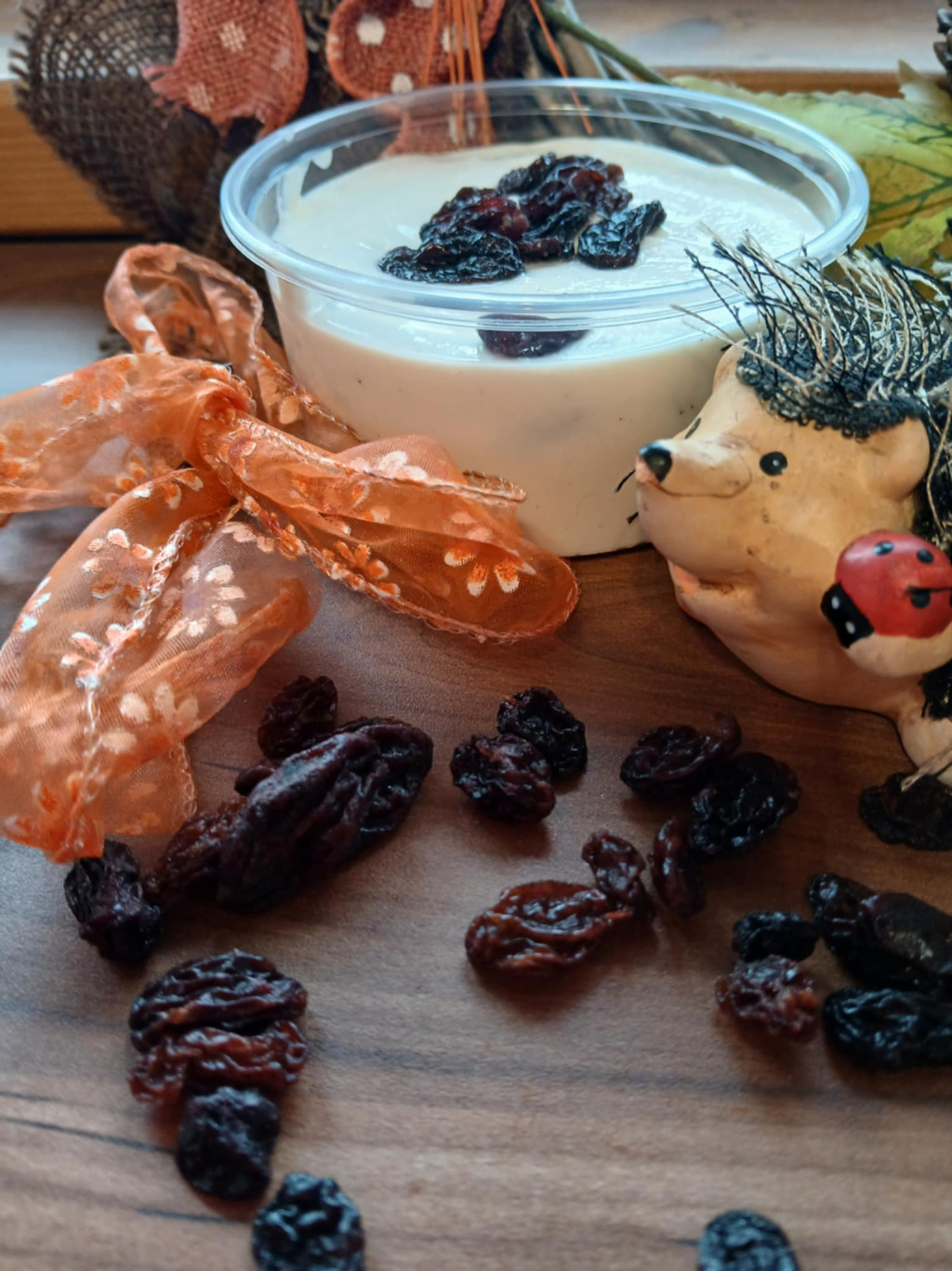 Házi vaníliás mazsolás tejszínes túró desszert.