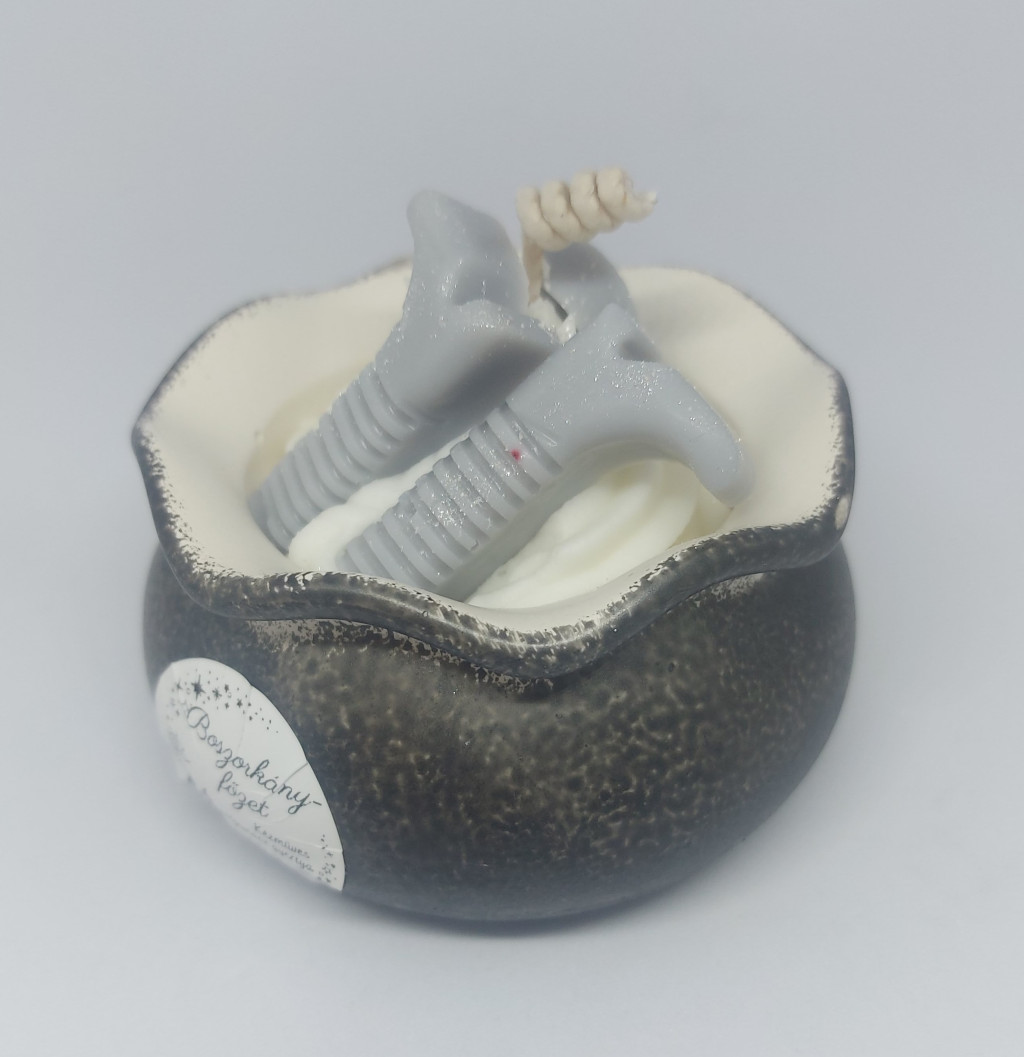 A szintén kézzel készült, kerámia üstbe igazi titkokkal teli, szójaviasz gyertya került. Illata egyszerre titokzatos, fűszeres és csábító, mintha csak egy boszorkány gyújtana tüzet az erdőben éjszaka, hogy elkészítse titkos varázsfőzetét.