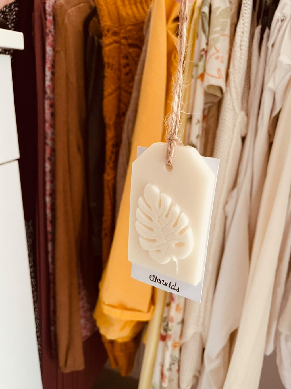 Ezekből diszkréten, de mégis érezhetően árad belőlük az illat, különösen kis légterű helyiségekben, szekrényekben érvényesül igazán. Ha viszont úgy érzed, már gyengül az illata, vagy lecserélnéd újra, párologtató tetejére téve megolvaszthatod őket és újult erővel fognak illatozni! (Csak arra figyelj, hogy elég mély legyen hozzá a párologtató tálcája. Ha úgy látod, nem fér el benne a teljes táblácska megolvadva, tördnyugodtan darabokra.) Az akasztónak természetes, lebomló madzagot használtam. Igazi természetbarát, hulladékmentes dekoráció tehát :)