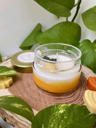 - kis 100 ml-es üvegtégelyünk, tele a legjobb minőségű, környezetbarát és tiszta szója, ill. repceviasszal,
