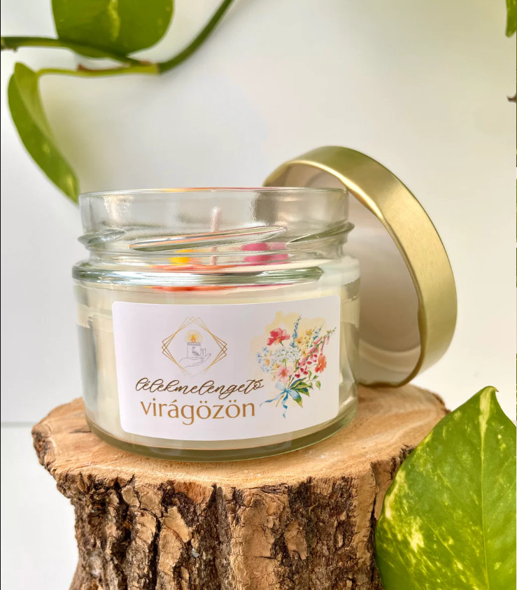 Ezt a gyertyát elsősorban a virágillatok szerelmeseinek álmodtam meg. Tetejére színes virágviaszok kerültek, oldalára pedig virágos design címke. Akár az otthnonodat akarnád tavaszi hangulatba hozni, akár valaki mást lepnél meg valami különlegesebbel a virág helyett / mellé, ez tökéletes választás lesz!