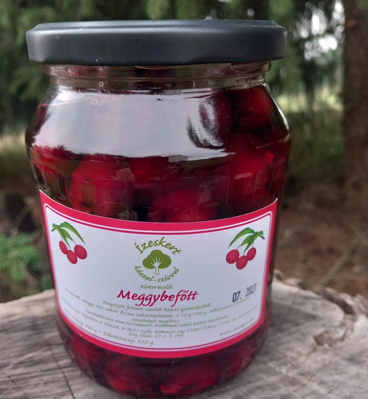 Meggybefőtt, magozott Összetevők: meggy, víz, cukor Hőkezeléssel tarsítva. felbontás után hűtőben tárolva 1 hétig fogyasztható Tartósítószert nem tartalmaz.