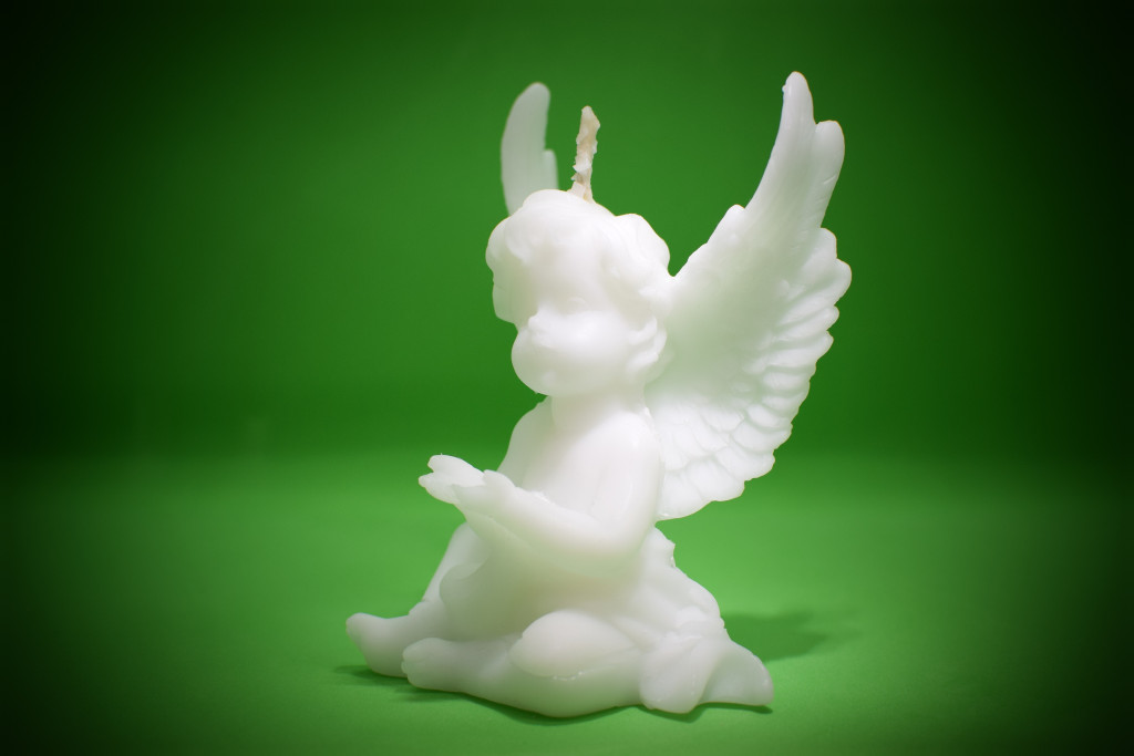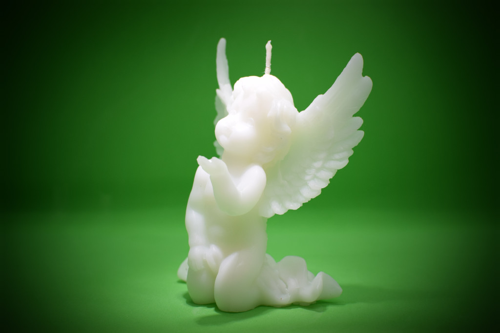 Paraffinból készült angyalka formájú gyertya. Magasság 11,5cm