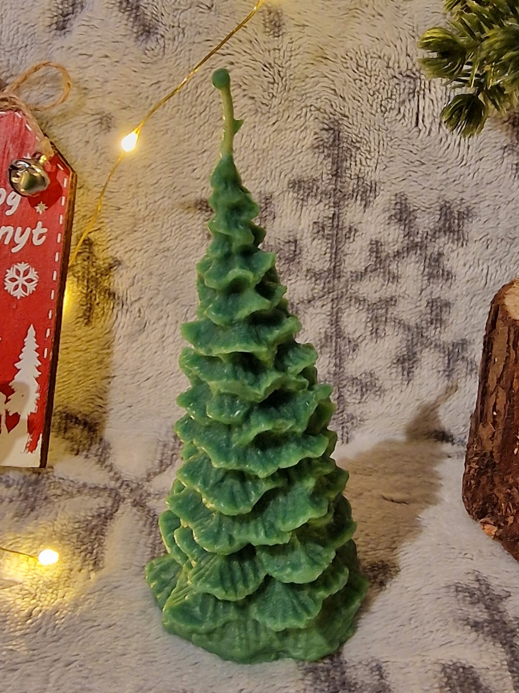 100% zöld méhviaszgyertya fenyő alakú; 8cm magas